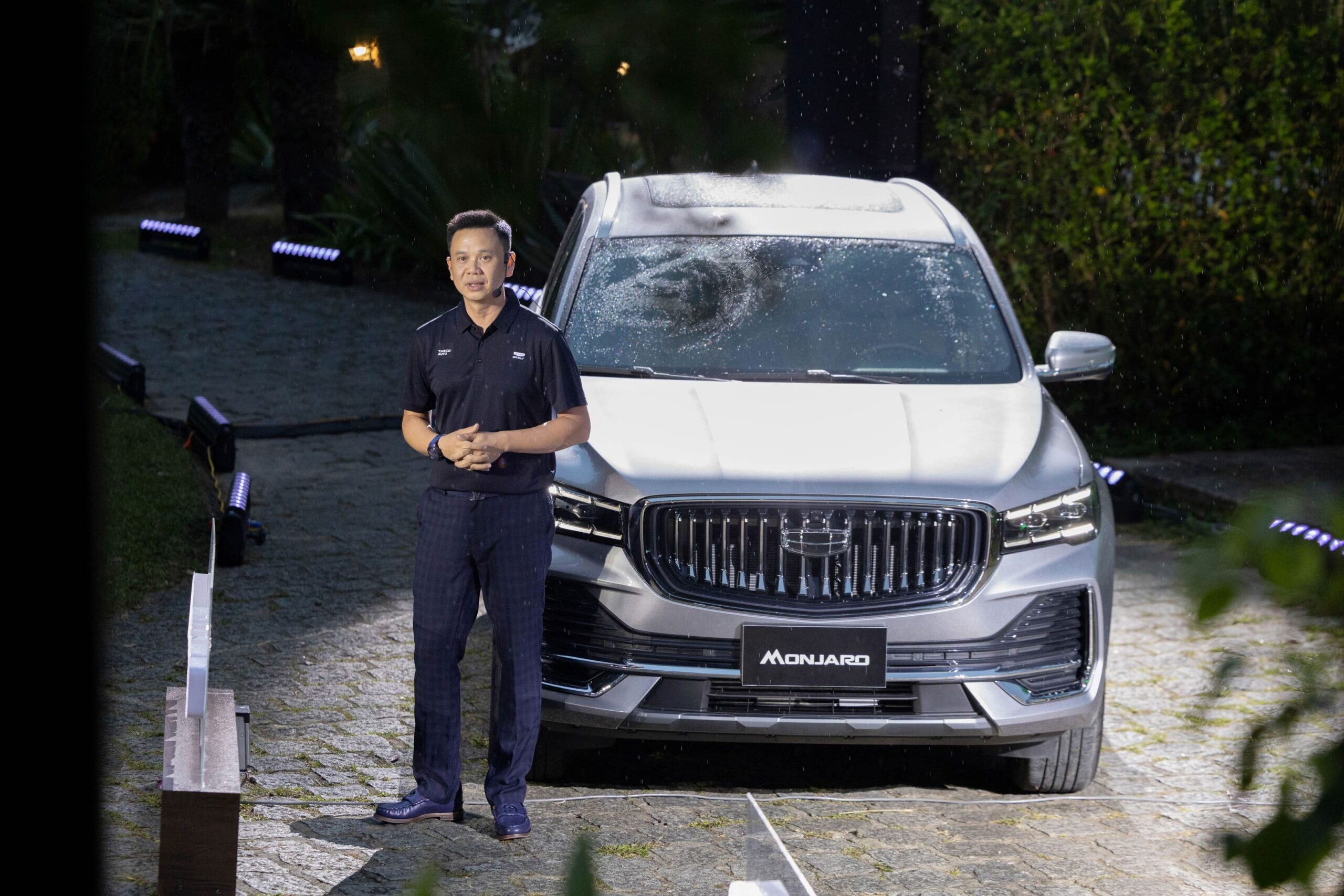 Sau phần giao lưu cùng đại sứ thương hiệu, hai gương mặt quen thuộc của cộng đồng yêu xe Lê Hùng (Autodaily) và Phan Tâm mang đến phần giới thiệu chi tiết về Monjaro và Geely EX5. Host Lê Hùng bắt đầu với Monjaro – mẫu SUV hạng D cao cấp được định vị cho những người dẫn đầu. Thiết kế ngoại thất mạnh mẽ, lấy cảm hứng từ ngôn ngữ Á Đông hiện đại, với lưới tản nhiệt nổi khối, cụm đèn LED sống động, cửa sổ trời toàn cảnh và đường gân dập nổi dứt khoát.